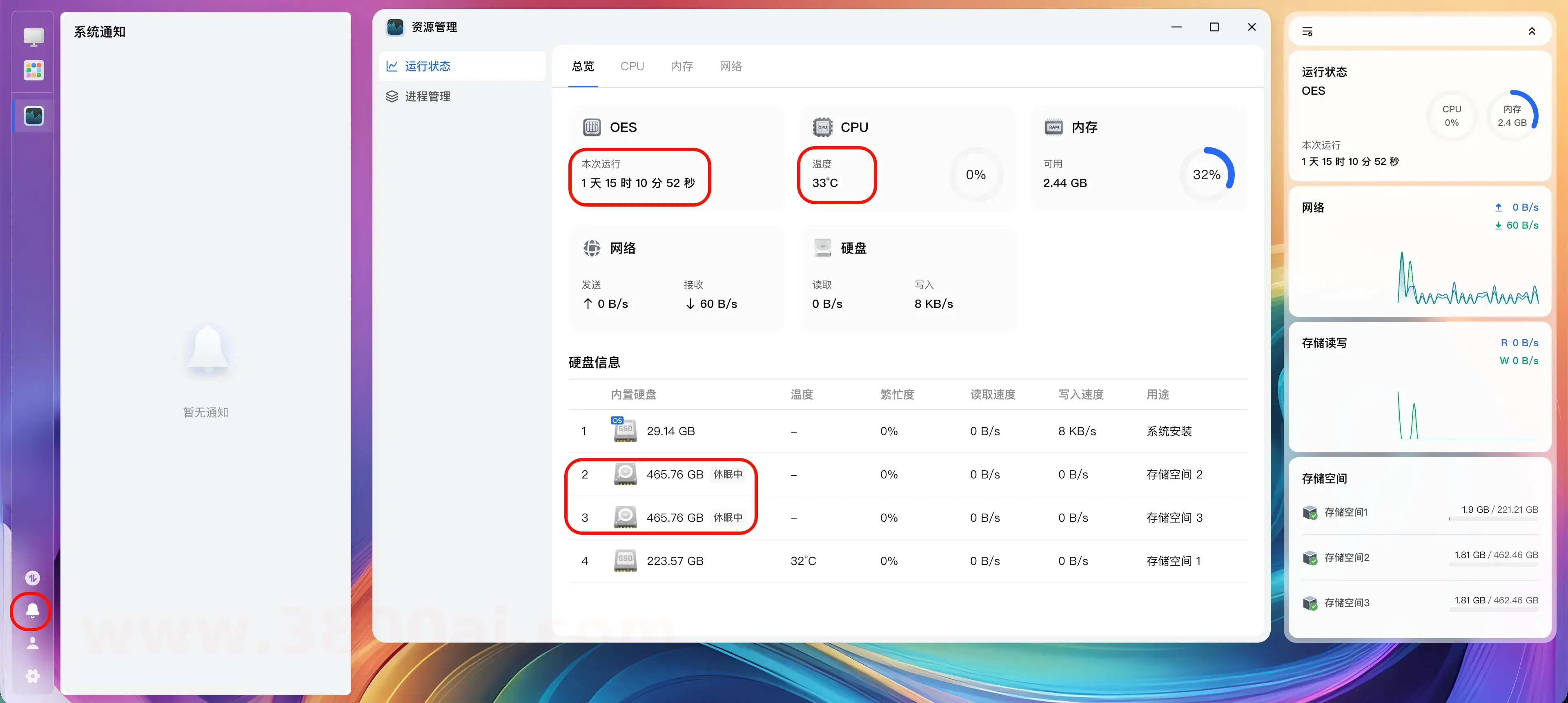 到1.1.22这个版本,A311D这个3盘位6核心的nas也算是ARM飞牛百元级新王了!甚至同环境,同网络,它比单盘位的RK3566还凉快4度。