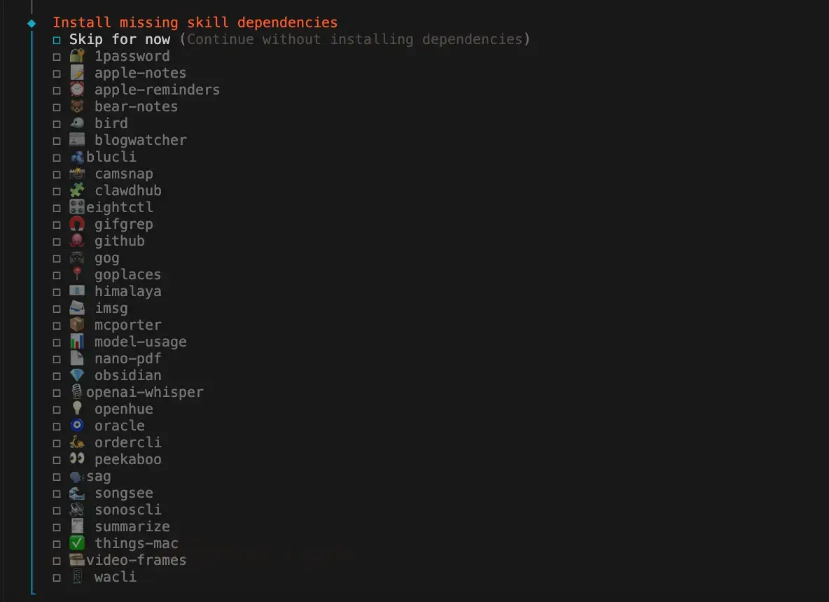 下一步,你可以用空格选中想要安装的skill,不是所有的都会用到,按需选择。