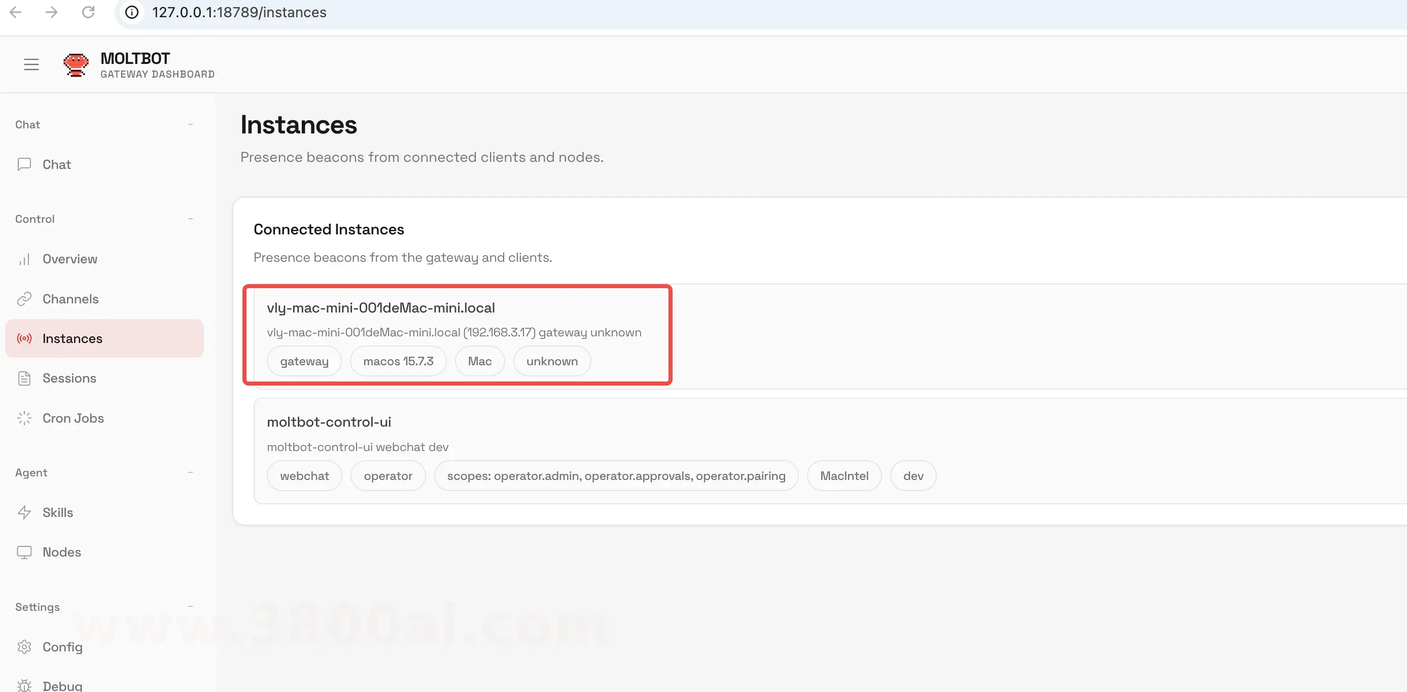 部署完成会自动打开后台网页,这时就可以看到我们的Mac Mini已经在线了。