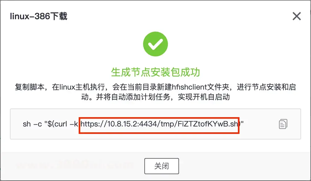 点击确定后,即可得到接入安装的链接地址