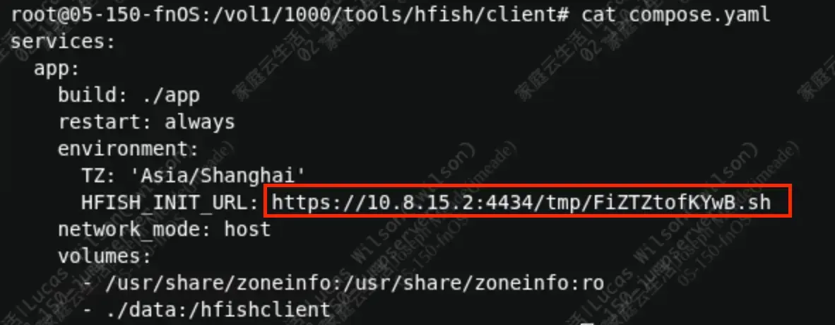 把这个地址替换到刚刚克隆项目的hfish/client目录下 compose.yaml 文件的环境变量HFISH_INIT_URL