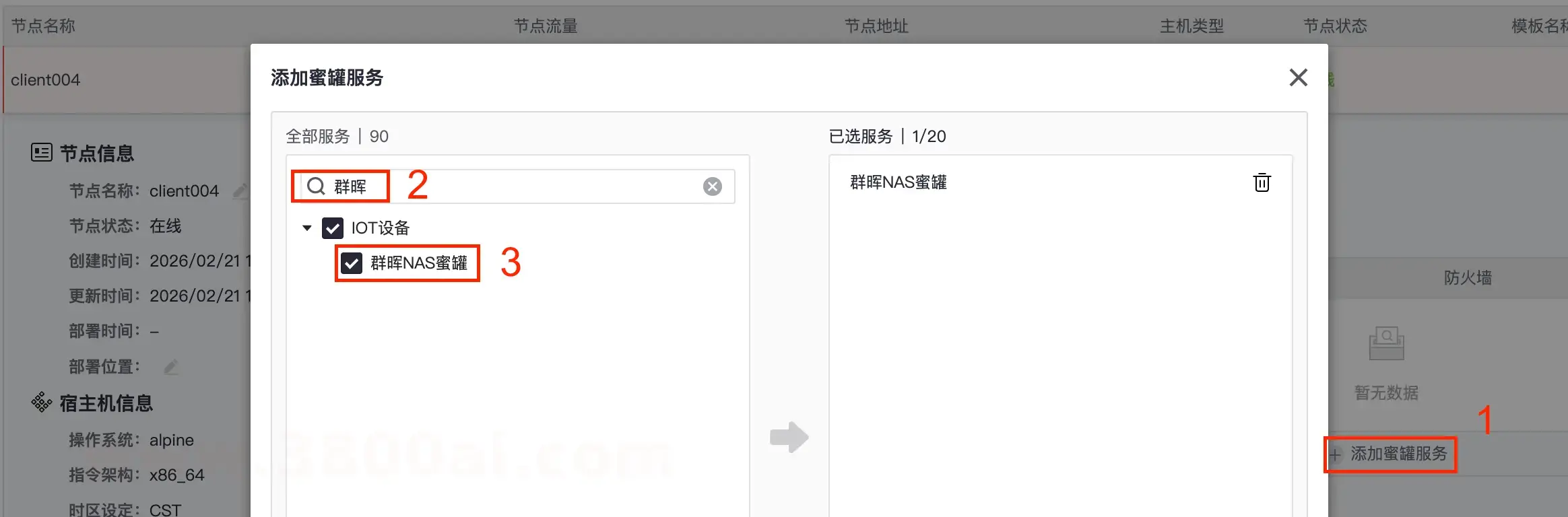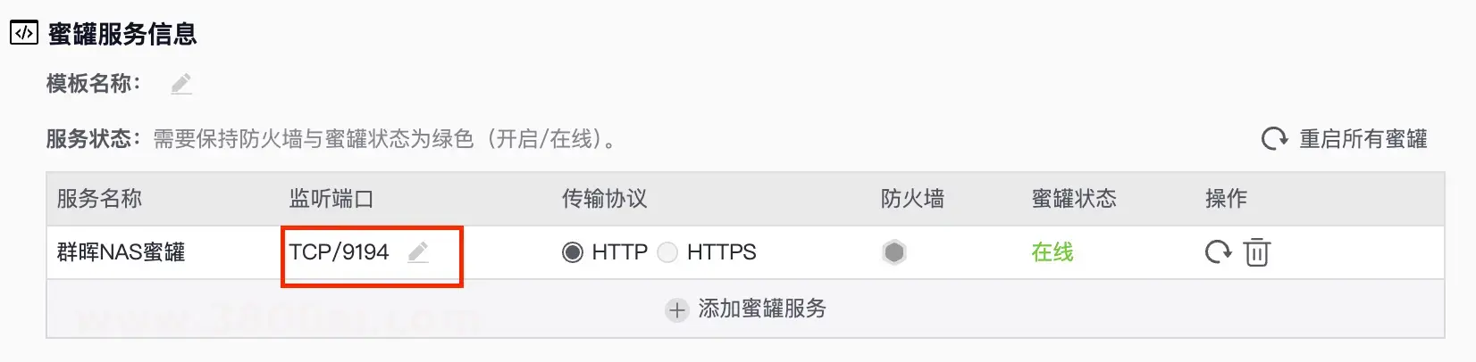 添加一个蜜罐服务,这里以群晖为例