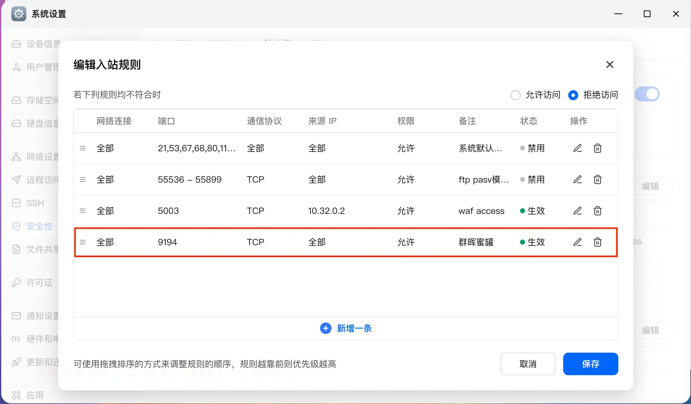 在飞牛防火墙把这个端口对外开放一下