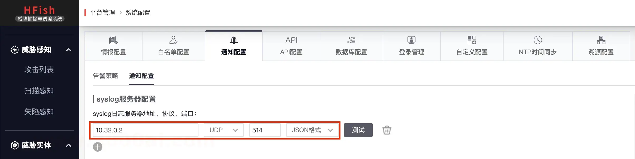 告警思路由蜜罐平台通过 syslog 外发 json 格式的日志,并关闭原生企微消息通知。