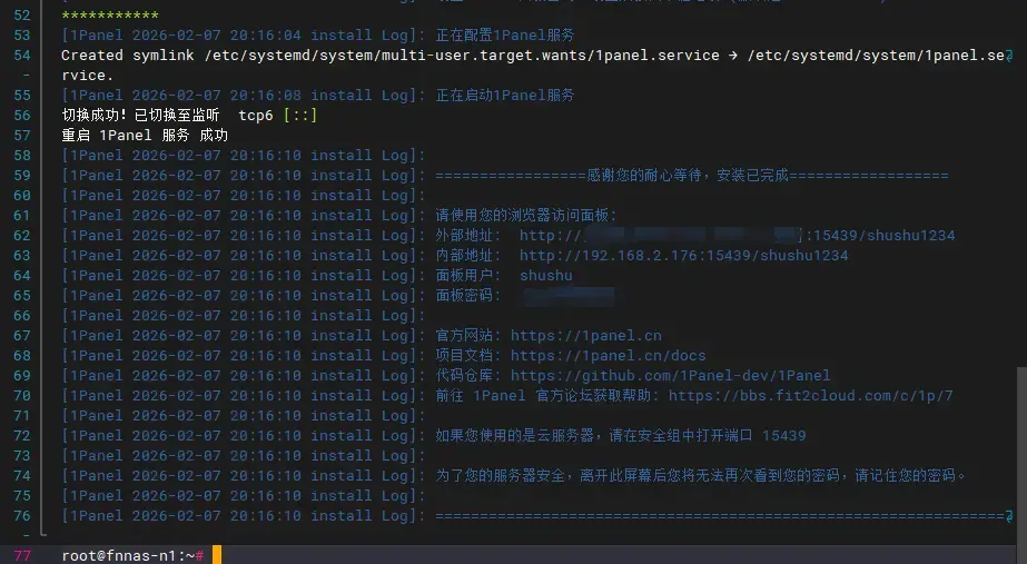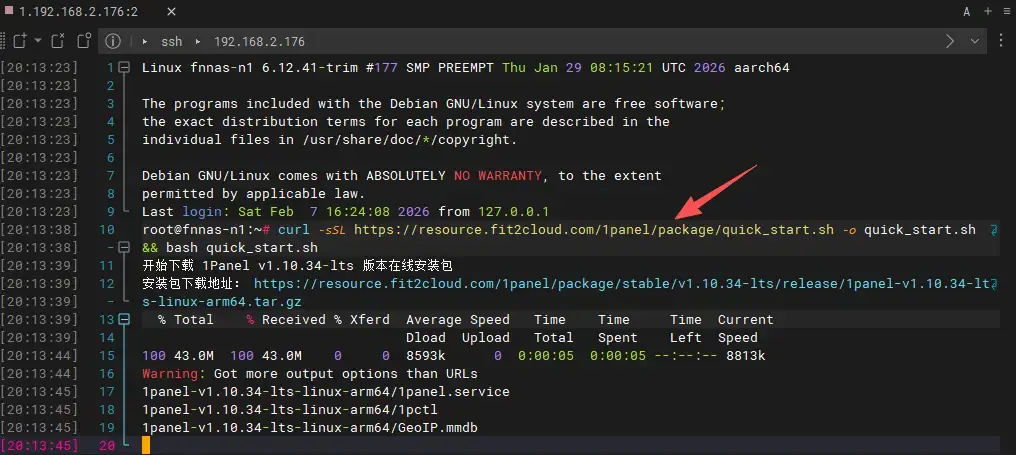 飞牛 NAS ARM 版基于 Debian 系统,我们可以直接使用 1Panel 官方提供的在线安装脚本。