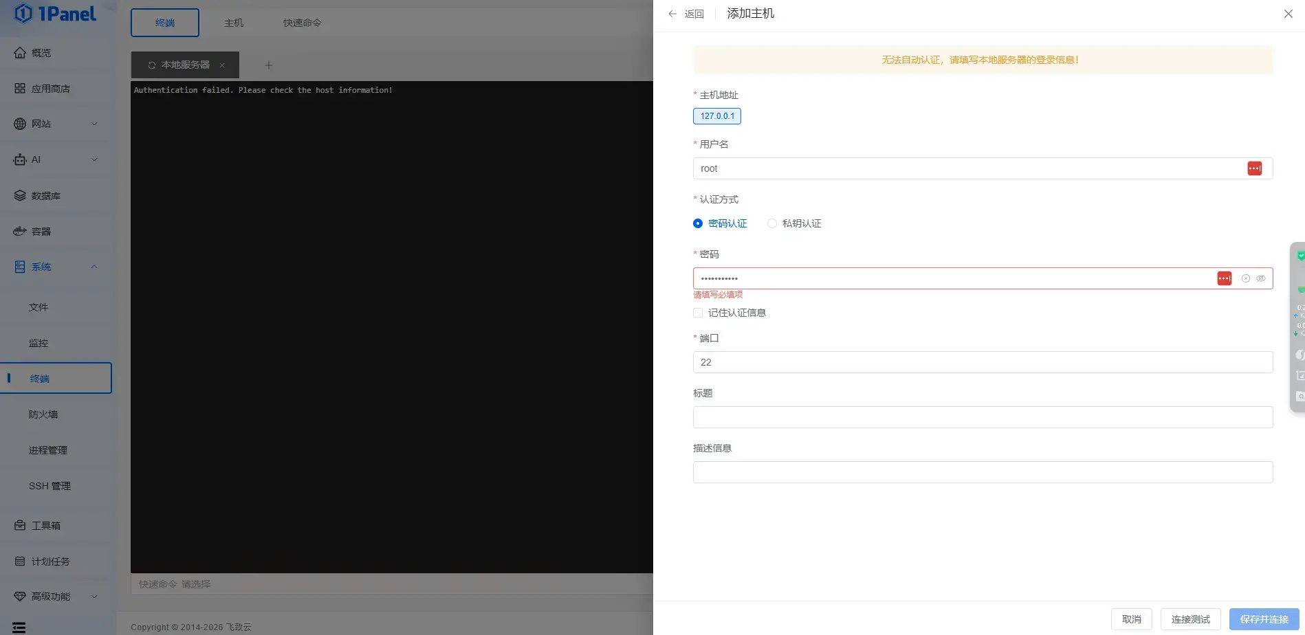 ✅ Web 终端:浏览器里直接敲命令,随时随地 SSH。