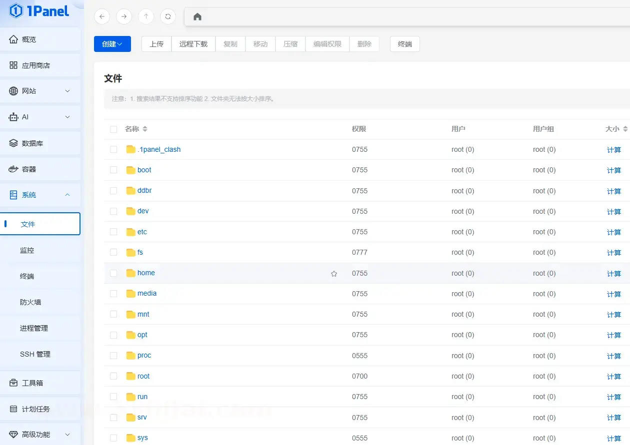 ✅ 高级文件管理:可视化的系统根目录管理,支持在线编辑、权限修改、上传下载。
