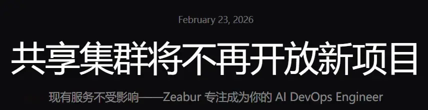 公告称,到3月15日将“停止在共享集群上创建新项目”,所以我打算先搭一个占着,因为它公告里面也说了“已经运行在共享集群上的服务不会受到影响”。