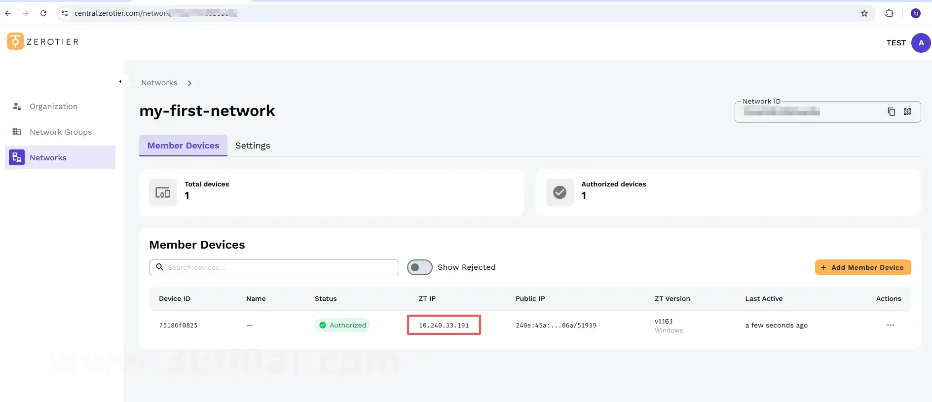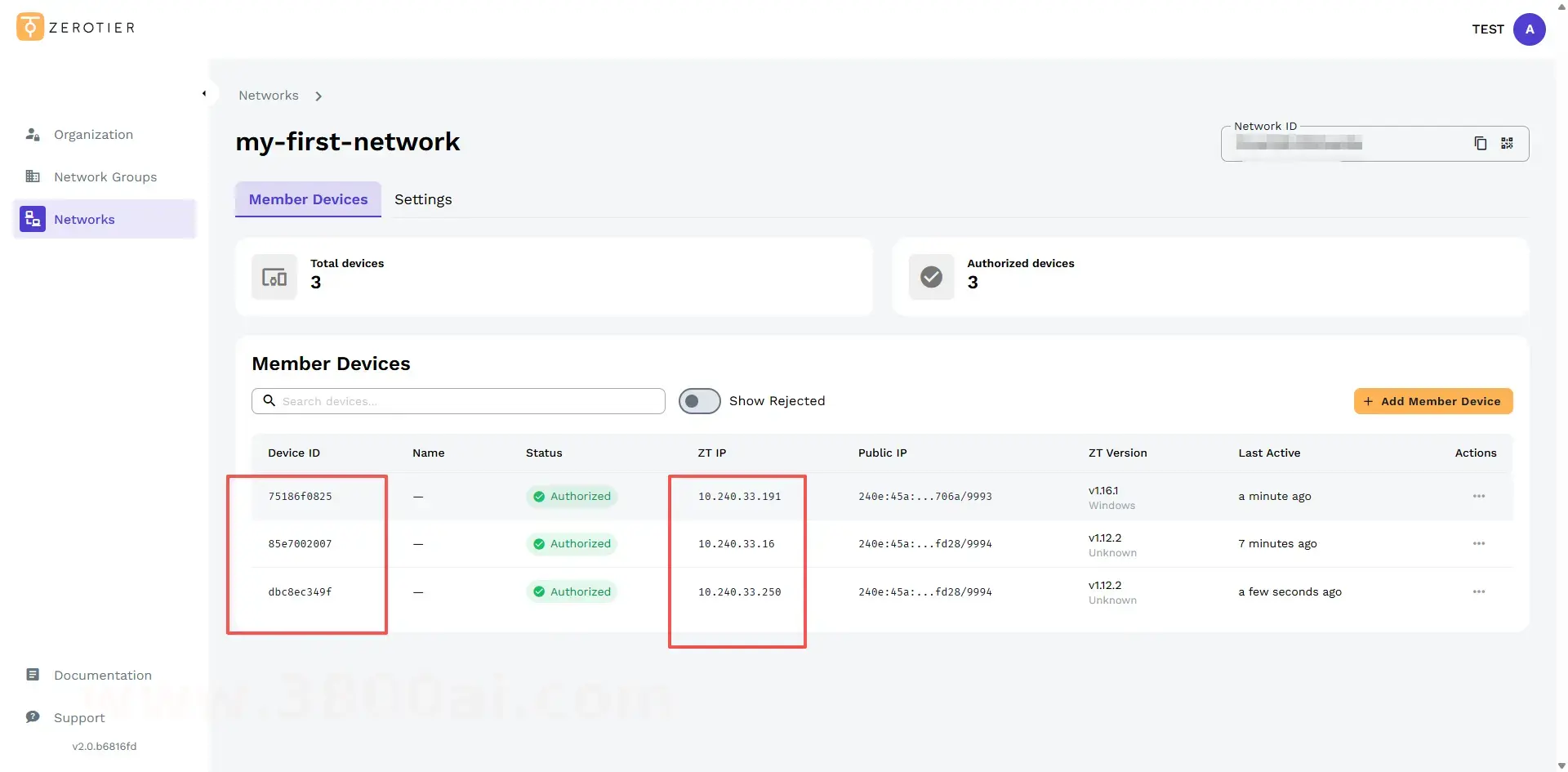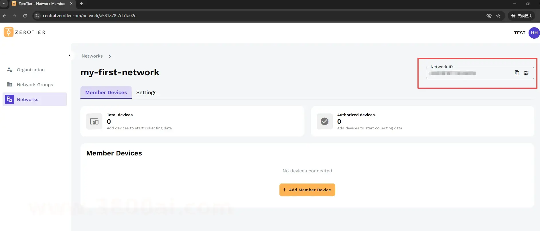 框出来的是网络ID,网络内的设备可以像局域网一样互相访问,前提是设备需要加入这个网络。