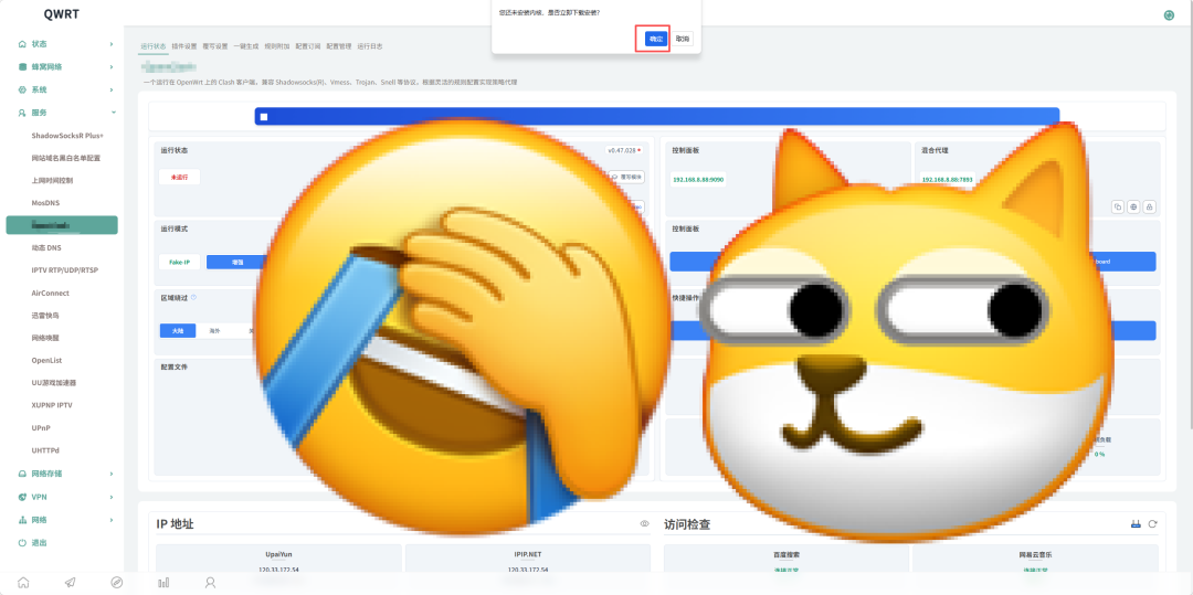 浏览器输入IP,默认账号密码 root/password,回车即可。密码可在系统-管理中修改。自带功能很全,但缺少核心代理插件。别急,一行命令搞定!在此之前,需要先调整几个设置。